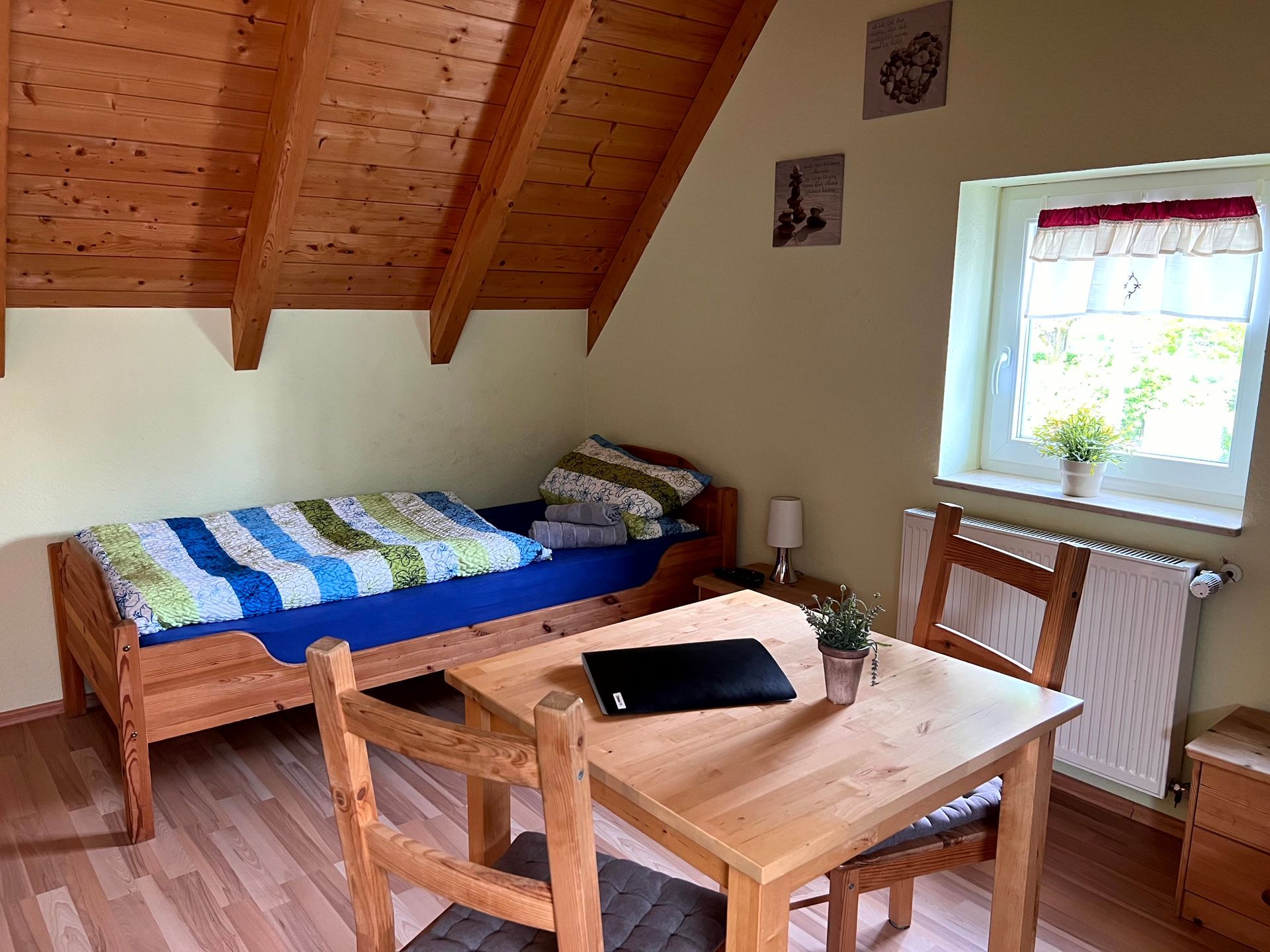 Zimmer 11 und 12 sind komfortable Doppelzimmer, die sich auf einer Etage befinden und ein Bad sowie eine Küche gemeinsam nutzen. Jedes Zimmer ist mit zwei Einzelbetten ausgestattet; in Zimmer 11 können die Betten auf Wunsch auch zusammengestellt werden. Zudem verfügen beide Zimmer über einen Tisch, Stühle, einen Schrank und einen Fernseher.